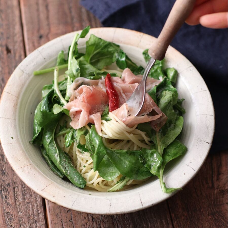 生ハムとルッコラのペペロンチーノ 暮らしニスタ